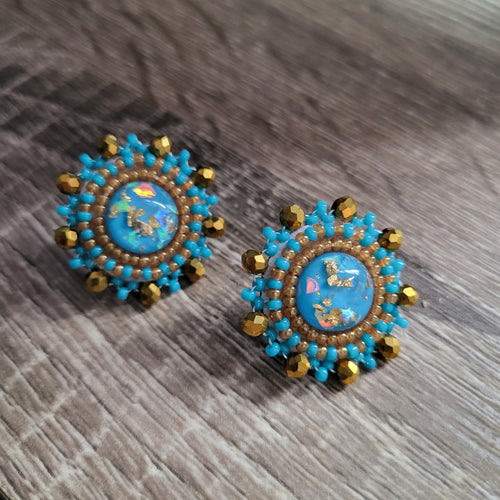 Shell Beaded Earrings with Black Leather Tassel Earrings